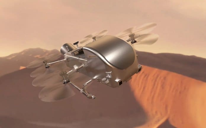 Dragonfly es un helicóptero, con ocho rotores que vuela como un gran dron, que explorará la luna Titán de Saturno y examinará docenas de lugares prometedores.