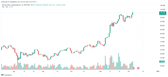 Este jueves, Bitcoin superó los USD 100.000 por primera vez, luego de que el presidente electo Donald Trump anuncie que nominará a Paul Atkins, un reconocido defensor de las criptomonedas, como presidente de la Comisión de Bolsa y Valores (SEC, por sus siglas en inglés) de Estados Unidos.