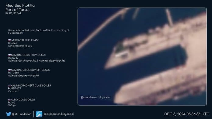 Según imágenes satelitales y reportes de Naval News, la evacuación incluye fragatas de clase Gorshkov, un submarino Improved-Kilo y buques de apoyo. Este movimiento podría ser una anticipación de amenazas mayores a la base, ya que las fuerzas opositoras buscan cortar las líneas de suministro y aislar las posiciones rusas en la costa siria. HISutton, analista naval, considera probable que estos buques busquen refugio temporal en puertos de Argelia o Libia.