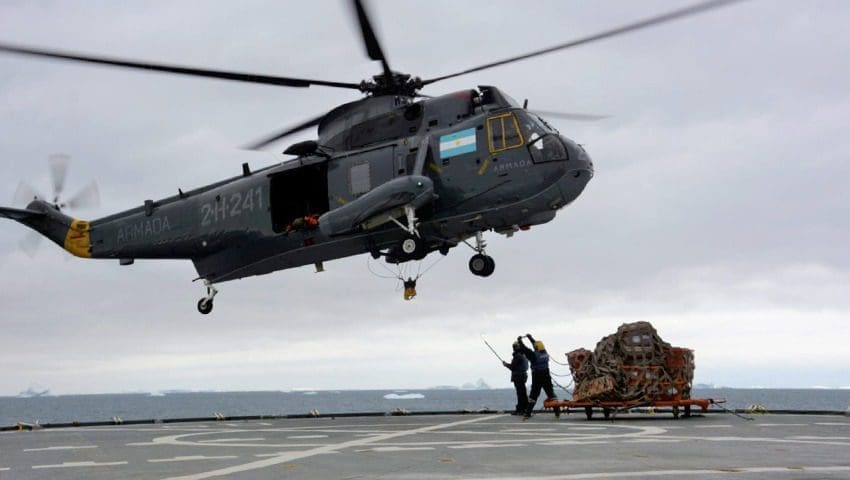 Durante la navegación de rompehielos ARA Almirante Irízar (Q-5) rumbo a la Antártida como parte de la Campaña Antártica de Verano 2024/25 (CAV), los helicópteros Sea King de la Segunda Escuadrilla Aeronaval de Helicópteros de la Armada Argentina que conforman el Grupo Aeronaval Embarcado (GAE) se incorporaron al rompehielos, en una maniobra conocida como “salto” que se realizó desde la Base Aeronaval Comandante Espora (BACE) hacia cercanías de Monte Hermoso, donde navegaba el buque.