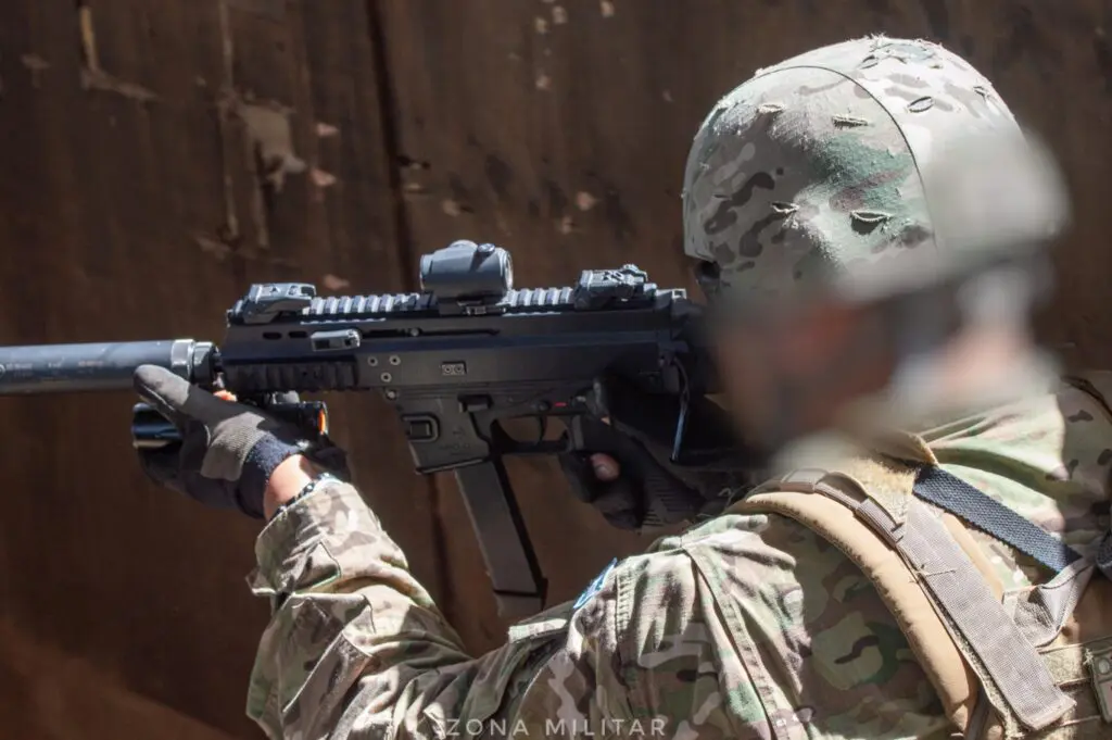 La Patrulla asignada al polígono tuvo a su cargo una demostración dinámica de tiro, con los Comandos evolucionando por la instalación, utilizando pistolas Glock, subfusils B&T APC9 y fusiles Daniel Defense M4A1-EA. La demostración incluyó una carga de stress físico, ya que los Comandos debían “recuperar personal” simulado con muñecos sobre camillas del tipo Sked.