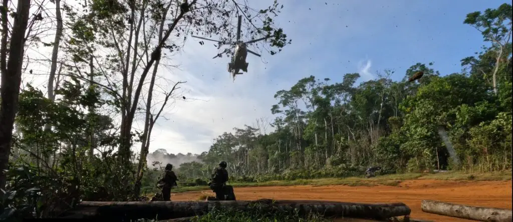 Las tropas intervinientes, que conforman el Comando Conjunto Catrimani II, operaron en horario nocturno con el empleo de dispositivos de visión nocturna, efectuando una infiltración desde helicópteros helicópteros UH-15 “Super Cougar” de la Marina brasileña (MB) y HM-4 “Jaguar” del Ejército brasileño (EB) empleando la técnica de fast rope para su descenso.