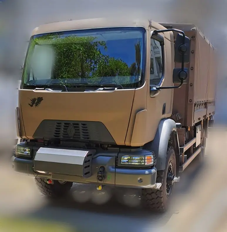 Por su parte, la firma francesa ha presentado al modelo Renault en su gama “D”, basado en su familia de camiones utilitarios para tareas y requerimientos militares. Al respecto, la empresa destaca que este modelo, en sus dos versiones, se encuentran “… adaptados a todas las actividades de transporte logístico militar (transporte de personal, carga, plataformas planas de 10 y 15 pies, recuperación de vehículos averiados, cisternas, repostaje, refugios técnicos transportables, equipos auxiliares, protección contra incendios, etc.).”
