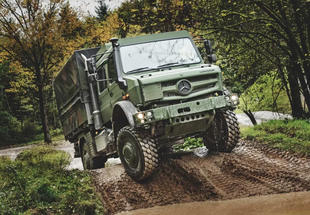El U 5000 de Mercedes Benz es una de las últimas y más modernas variantes de la familia UNIMOG, reconocida mundialmente por fuerzas militares por su confiabilidad, sencillez y robustez. Oficialmente, desde la firma germana, destacan su capacidad de carga de hasta 5 toneladas. Impulsado por un motor 231 HP de potencia y certificado con las normas Euro III y Euro VI, posee una transmisión manual de 8 velocidades, alcanzado velocidades de hasta 90 km/h.