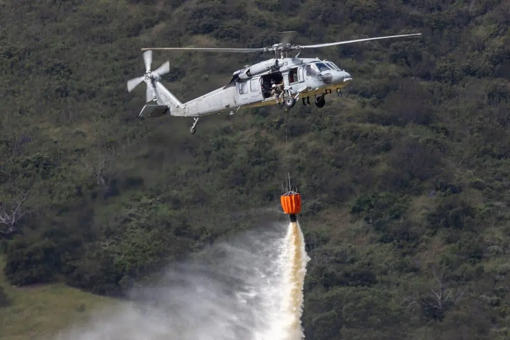Por su parte, la Guardia Aérea Nacional de California también está desplegando medios, entre ellos helicópteros de búsqueda y rescate HH-60G Pave Hawk equipados con el sistema bambi bucket.