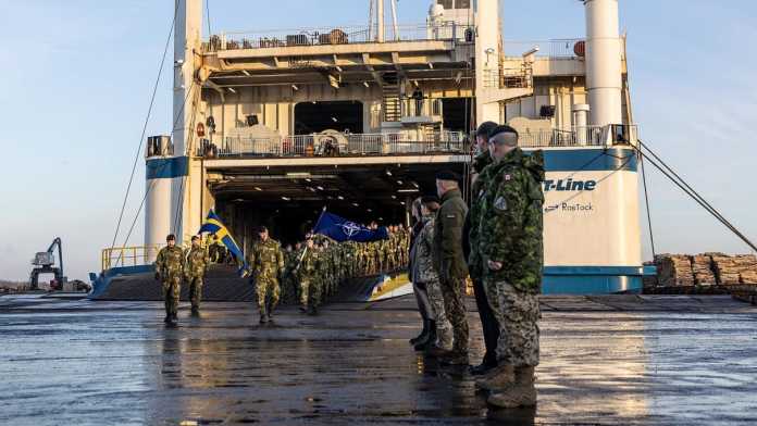 El contingente sueco, integrado por tropas del 71º Batallón del Regimiento Escania del Sur, estará estacionado fuera de la ciudad de Adazi en un campamento operado por Dinamarca pero compartido semestralmente entre ambos países. Los soldados, blindados y vehículos suecos desembarcaron del ferry, custodiados por unidades de la Guardia Nacional Letona. “…La misión del batallón sueco en Letonia durará inicialmente seis meses. Por ahora el batallón se centrará en instalarse en el Campamento Valdemar…”, añadió el comunicado de las FFAA suecas.