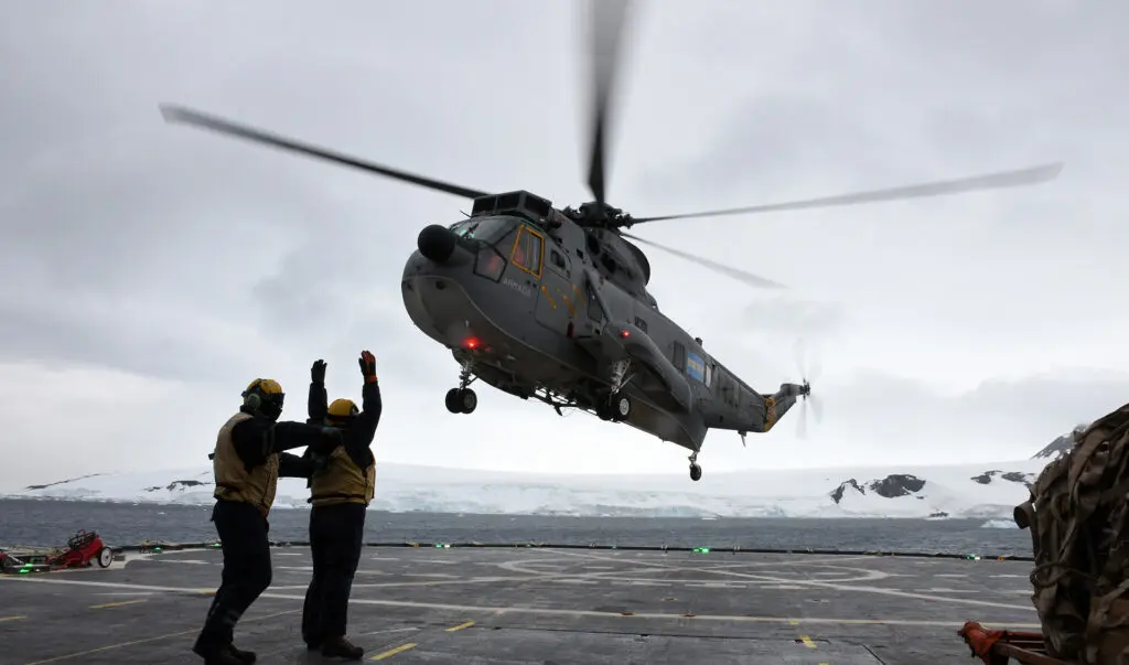 Tras concluir la primera etapa de la Campaña Antártica de Verano (CAV) 2024/25, el helicóptero Sea King matricula 2-H-245 de la Segunda Escuadrilla Aeronaval de Helicópteros (EAH2) de la Armada Argentina arribó esta mañana a la Base Aeronaval Comandante Espora. Esta aeronave, operada por el Grupo Aeronaval Embarcado (GAE) a bordo del rompehielos ARA “Almirante Irízar” (Q-5), regresó a su hangar para someterse a tareas de mantenimiento programado, mientras el rompehielos se dirige al Apostadero Naval Buenos Aires para su reabastecimiento.