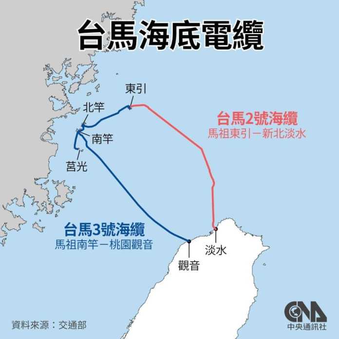 2 cables submarinos de Taiwán, que conectan la isla de Taiwán y la isla periférica de Matsu están cortados desde esta mañana. Se desconoce la causa exacta.