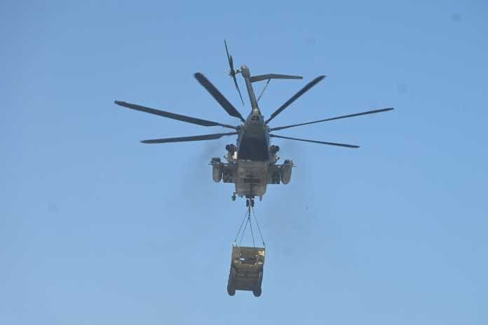 Una de las principales capacidades de alas rotatorias en servicio con el Cuerpo de Marine de los Estados Unidos son los helicópteros de transporte pesado CH-53E Super Stallion. Recientemente, las aeronaves han tenido una nueva posibilidad de demostrar sus capacidades, al transportar por aire un total de ocho (8) vehículos blindados a rueda 8×8 Stryker dados de baja por el Ejército de EE.UU. con destino al Fuerte Indiantown Gap, Pensilvania, donde serán empleados como blancos en ejercicios de tiro.