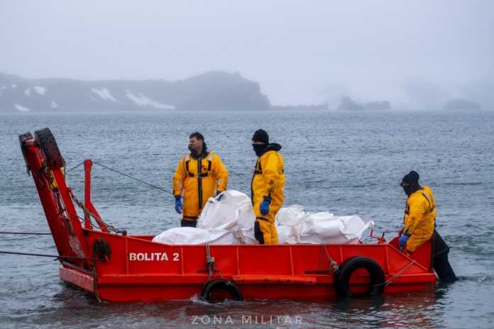 Durante las maniobras de descarga de suministros y combustibles, el Suboficial Rodríguez explicó en detalle cuáles son las principales funciones del Grupo de Buceo dentro de la base. Una de sus responsabilidades fundamentales es brindar apoyo a los equipos científicos, ya que los buzos colaboran en diversas actividades marítimas y náuticas, como la recolección de muestras de agua, sedimentos y flora acuática. Estas tareas pueden realizarse tanto en el lago Uruguay como en la bahía o en los lagos que se encuentran en la isla, y son fundamentales para las investigaciones sobre el ecosistema antártico. Además, el grupo facilita el traslado de los científicos a distintos puntos de la isla, asegurando que las expediciones puedan realizarse de manera segura y eficiente.