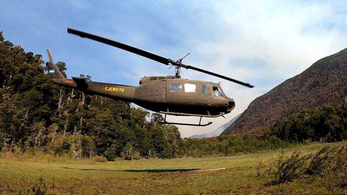 Tampoco debe dejarse de mencionar el apoyo que estan brindado desde la Dirección de Aviación del Ejército Argentino a través de la Sección de Aviación de Ejército de Montaña 6. Actualmente, teniendo como base San Carlos de Bariloche, se dispone de un Bell UH-1H para el traslada de brigadistas tanto hacia los focos de incendios, como para su repliegue posterior. A su vez, destaca la realización de vuelos de reconocimiento, durante los cuales, sirviéndose de cámaras térmicas, son detectados focos de incendio en la zona de operaciones para ser reportados a los centros de control y coordinación para su posterior combate.