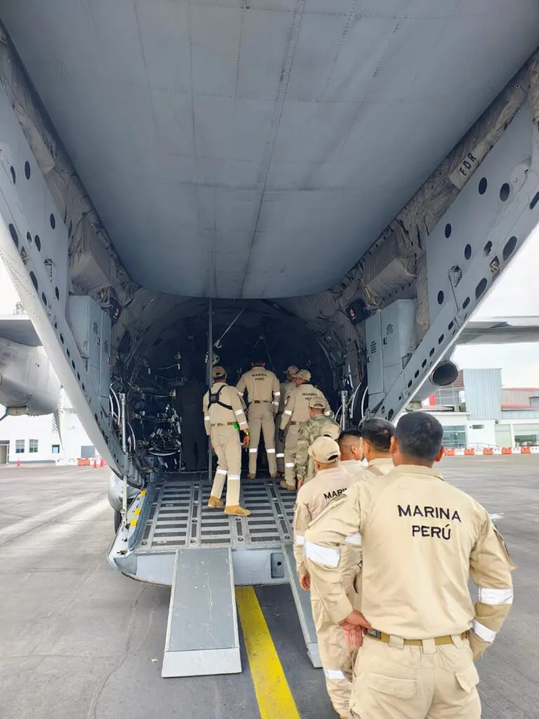 El componente USAR (Urban Search and Rescue) a bordo de un avión Leonardo C-27J Spartan, de la Fuerza Aérea del Perú (FAP), luego de ser convocado por el Ministro de Defensa en horas de la madrugada, lo que confirma su capacidad de rápida respuesta a emergencias. Ni bien aterrizaron en el Aeropuerto Internacional “Capitán FAP Carlos Martínez de Pinillos”, un camión MAN, modelo TGM-MIL 13.280, del Ejército del Perú, los condujo junto a su equipamiento hasta la zona de desastre.