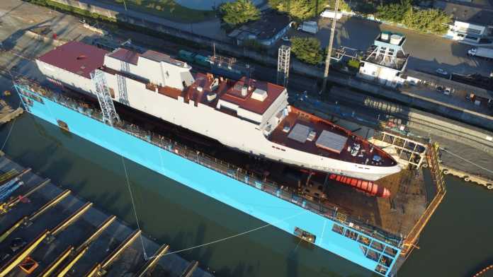 Gracias una publicación en la red social Instagram, a través del grupo Shipspotting iItajai, fue captado a través de un sobrevuelo de un drone los últimos avances en la construcción de la Tamandaré (F200) con la confirmación de que el cañon de cañón naval 76/62 Super Rapid MF ya ha sido instalado en la sección de proa del buque.