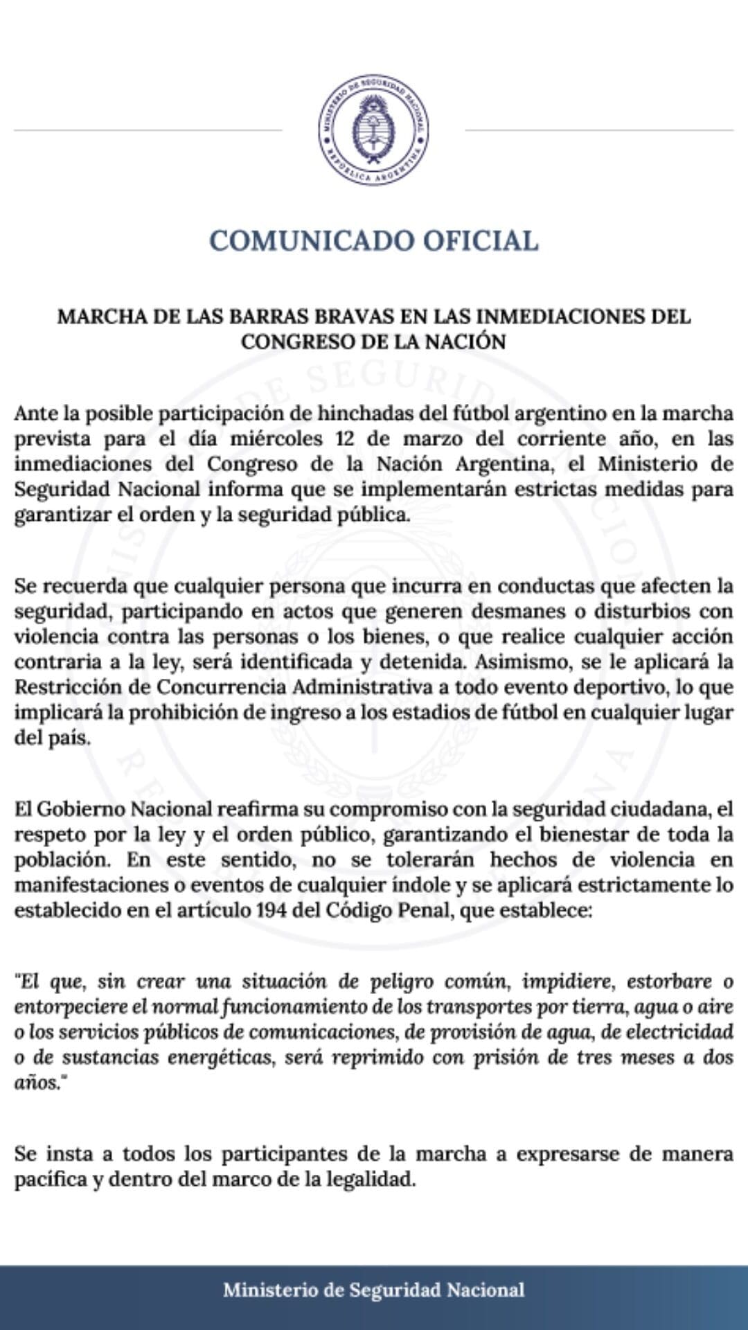 Según las declaraciones de la titular de Seguridad Nacional, “los más de cien detenidos enfrentan penas de hasta 20 años de prisión” gracias a la nueva “Ley Antimafia”. Bullrich declaró en su perfil de X que “se terminó el tiempo de los aprietes, la extorsión y el negocio del miedo. Vamos a desmantelar estas estructuras delictivas. En Argentina manda la ley, no los barras, ni la izquierda”.