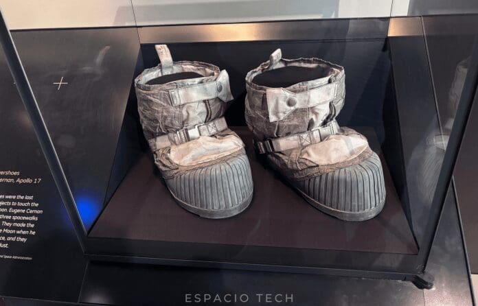 En este sentido, durante nuestra visita por el museo pudimos fotografiar los cubrezapatillas que Cernan utilizó durante sus tres caminatas lunares en diciembre de 1972.