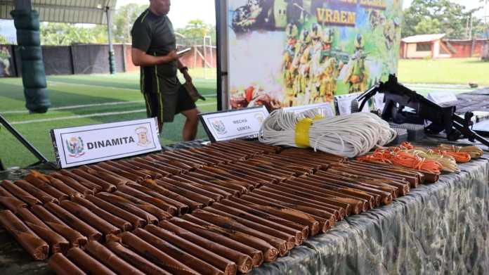 En la intervención de reconocimiento y combate, las fuerzas del orden incautaron 194 cartuchos de dinamita, dos cajas con 200 fulminantes no eléctricos, dos rollos de mecha lenta con 120 metros y dos granadas.