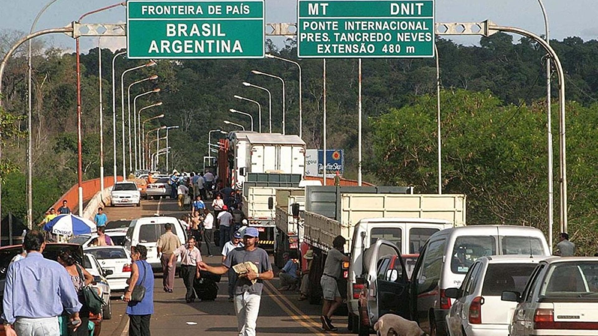 El puente internacional Tancredo Neves, de 480 metros, une a Puerto Iguazú con Foz de Iguazú, en Brasil. Y conecta con Ciudad del Este, en Paraguay. Créditos: Clarín