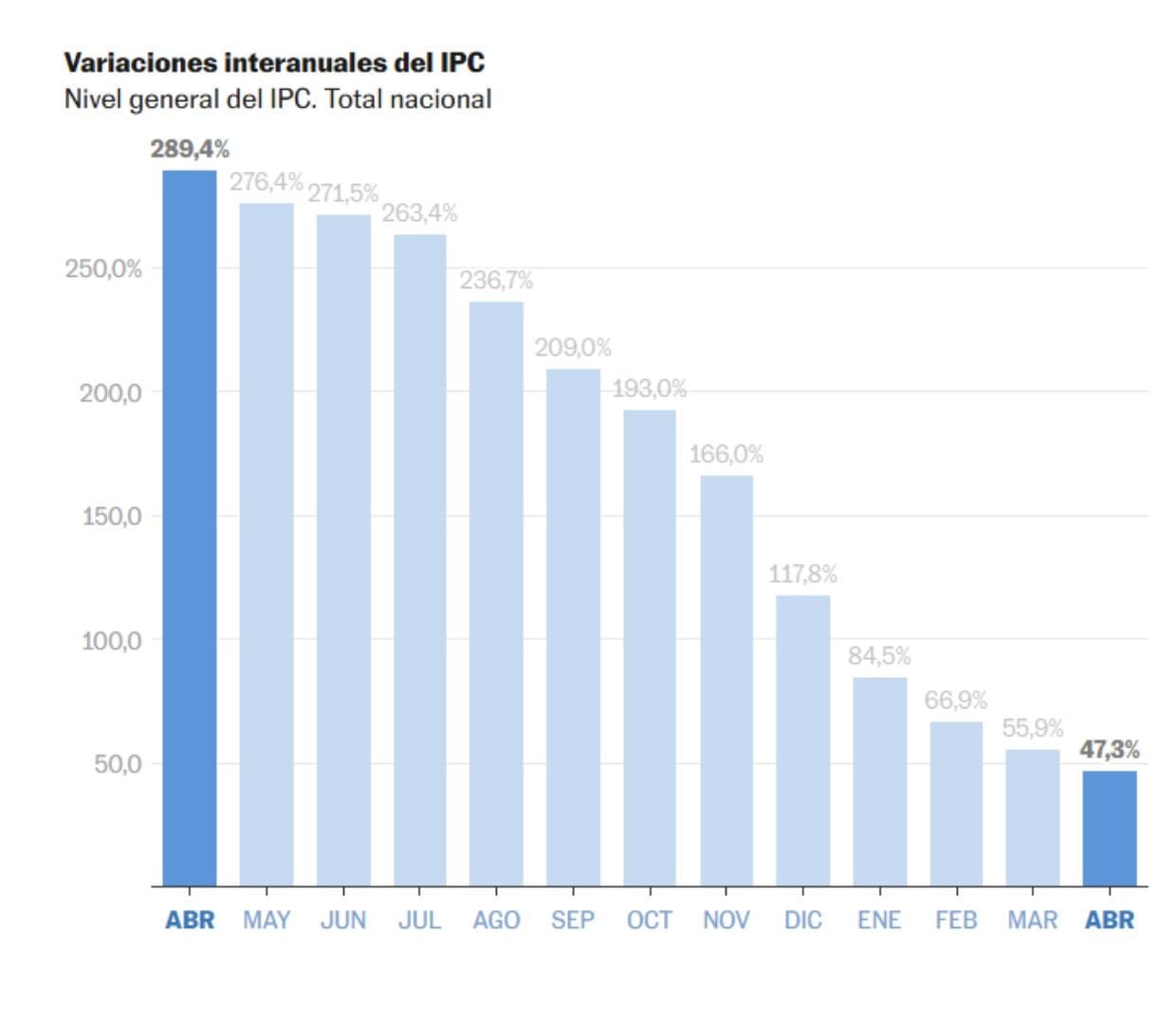 La inflación en Argentina se desaceleró en abril, alcanzando un 2,8%, lo que representa una baja respecto al 3,7% de marzo. Los datos oficiales conocidos señalan que la inflación acumulada en el primer cuatrimestre de 2025 llega al 11,6% y en el último año, al 47,3%.
