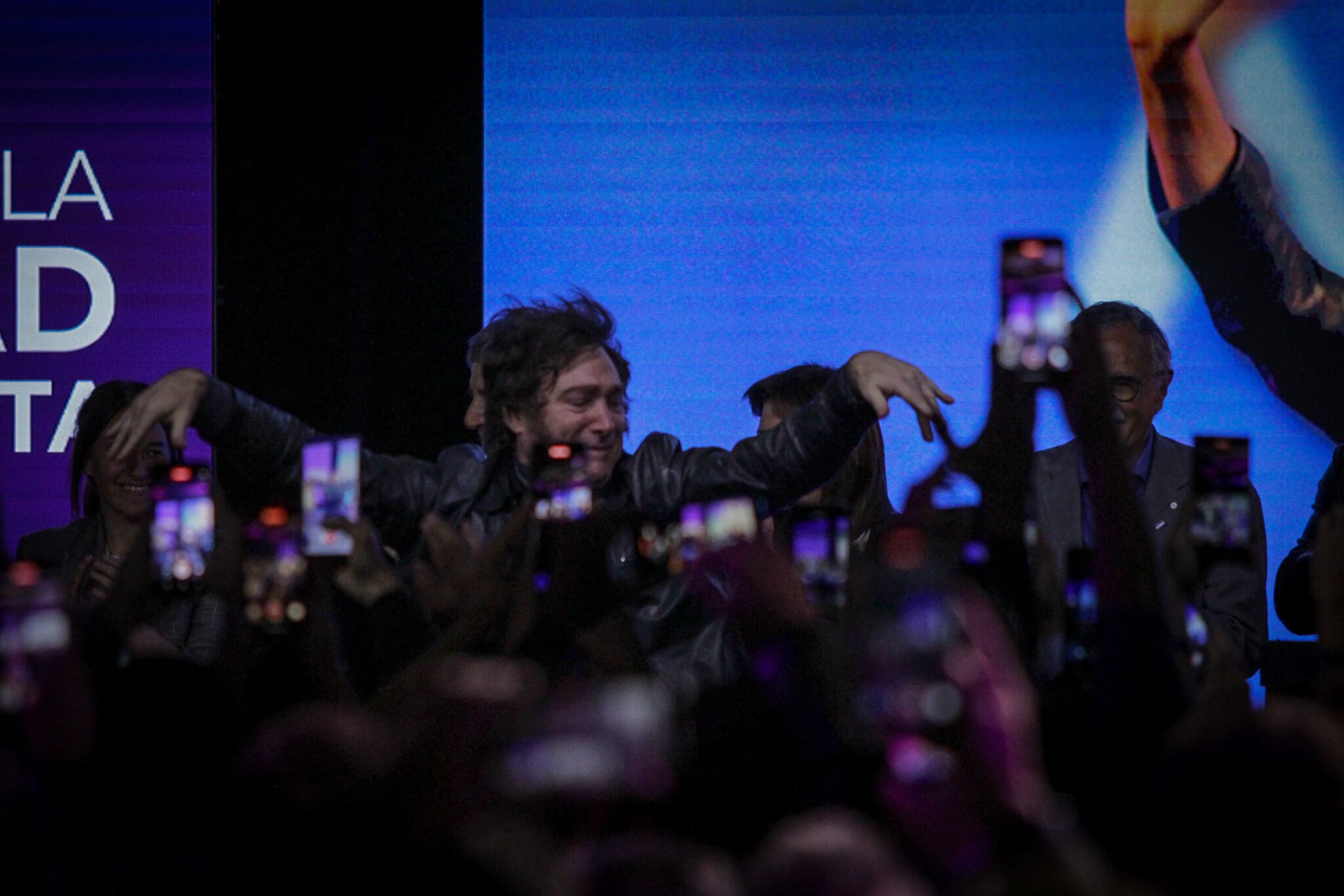 Mientras tanto, a 20 cuadras se gestaba el festín de la juventud libertaria, encabezada a las afueras del Hotel Libertador por los referentes en redes sociales como Daniel Parissini, alias “el Gordo Dan”, Marilú, y Agustín Romo, diputado de la provincia de Buenos Aires, que incentivaban al festejo en conjunto de la militancia. El Estratégico accedió al búnker de La Libertad Avanza y a los minutos el escenario se plagó de todos los ministros, Karina Milei, el presidente de la Nación, Javier Milei, que ingresó con sus gestualidades particulares, y por último le abrieron paso al ganador de la elección porteña, Manuel Adorni.