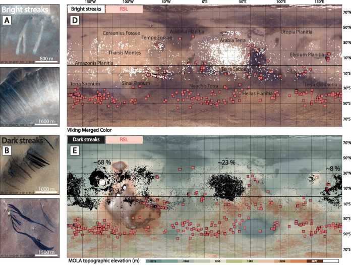 Las imágenes utilizadas provienen en gran parte de la cámara HiRISE a bordo del orbitador Mars Reconnaissance Orbiter de la NASA, con registros entre 2006 y 2020. Las vetas suelen aparecer repentinamente, extenderse entre 600 y 775 metros, y desvanecerse con el paso de los años. Algunas incluso esquivan obstáculos y se bifurcan, reforzando la ilusión visual de un líquido que fluye.