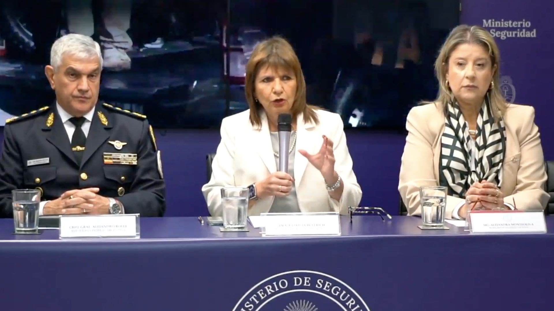 En una conferencia de prensa, la Ministra Bullrich dio los detalles del operativo de seguridad, en el cual se logró desarticular y neutralizar una de las células de la estructura criminal de Tren de Aragua, que operaba en el país. En su presentación, Bullrich estuvo acompañada de la Secretaria de Seguridad (Alejandra Monteoliva), del Secretario de Lucha contra el Narcotráfico (Martin Verrier), del Jefe de la Policía Federal (Alejandro Rollé) y del Jefe del Departamento Antimafia (Gonzalo Gallo).