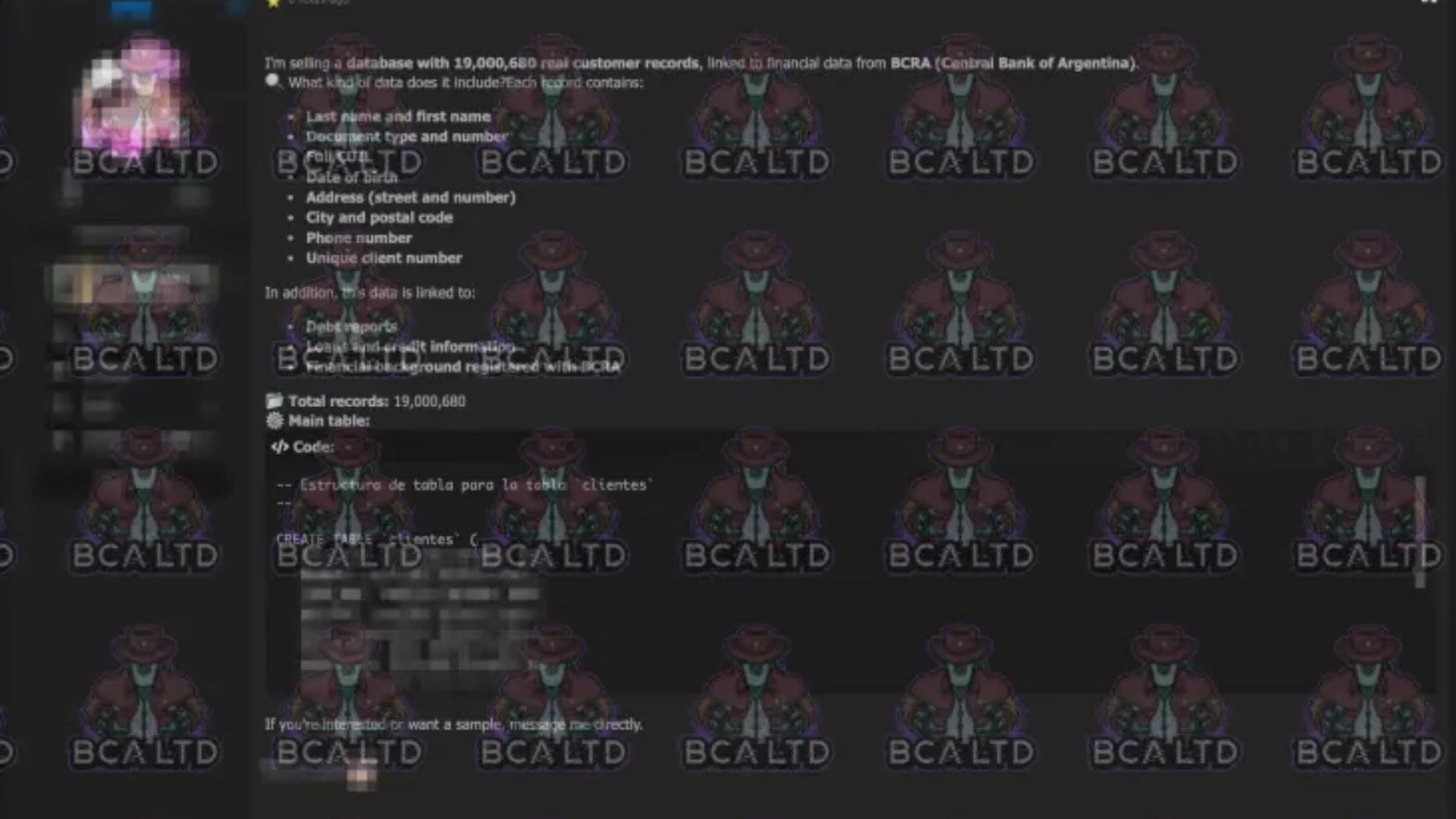 A principios de esta semana, una organización internacional de ciberseguridad denunció una masiva filtración de datos sensibles del Banco Central de la República Argentina (BCRA) producto de un ciberataque. Al menos 19.000.680 registros de clientes de la entidad estarían siendo ofrecidos a la venta en foros clandestinos de la dark web, según alertó la firma británica Birmingham Cyber Arms LTD.