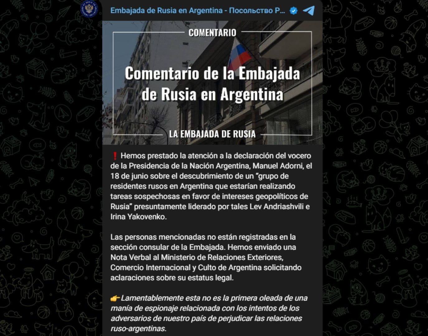 Según el vocero presidencial, el grupo de espías trabajaba a través de la creación y difusión de contenidos en redes sociales. No obstante, la acusación generó una inmediata y enérgica respuesta de la Embajada de Rusia en Buenos Aires, que desmintió los señalamientos y exigió explicaciones oficiales.