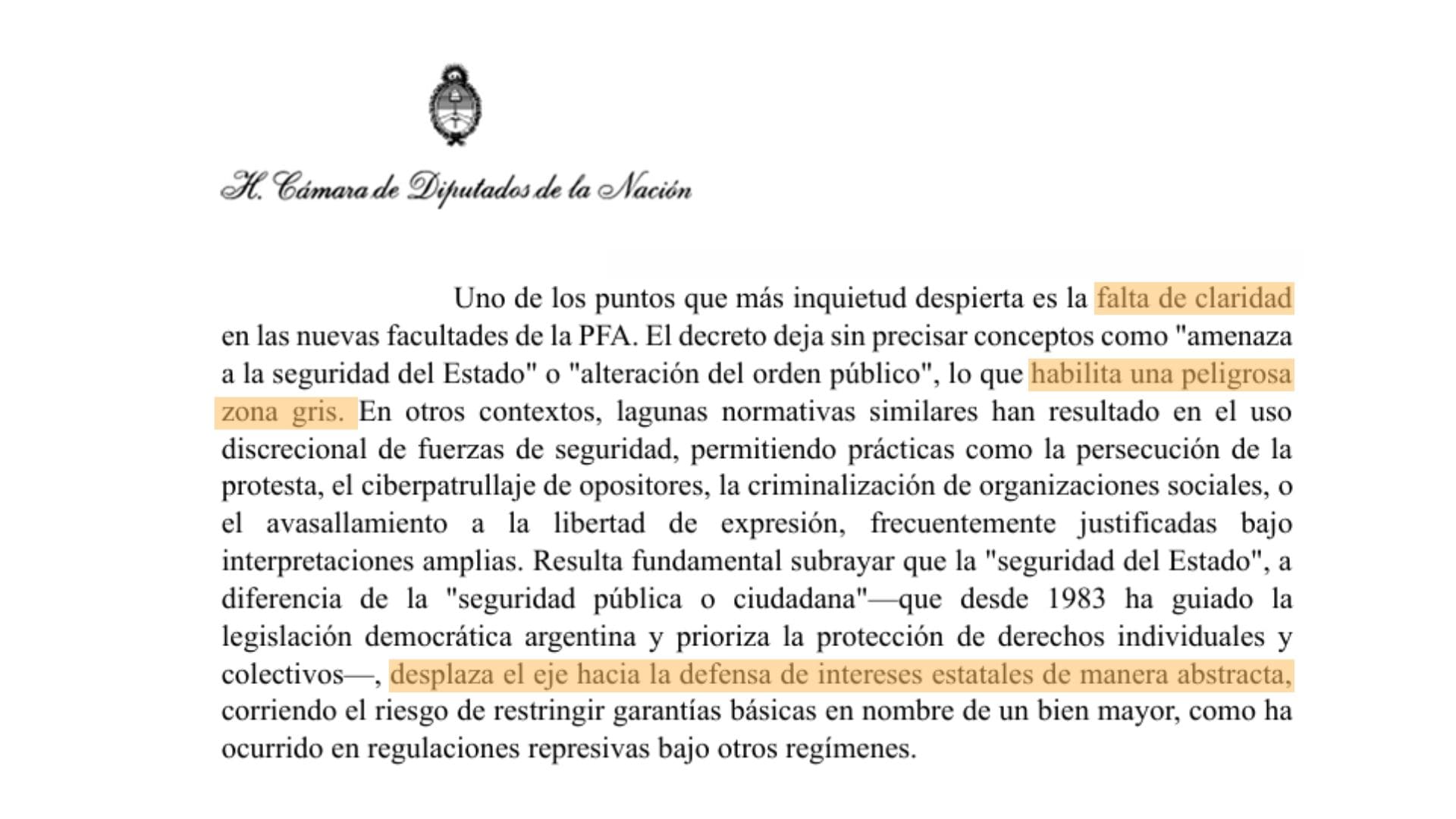 Los legisladores también critican que el Ejecutivo podría adoptar un modelo de “seguridad del Estado” similar al utilizado por regímenes autoritarios, en lugar de centrarse en la seguridad ciudadana basada en derechos humanos, como establece la legislación democrática desde 1983. “El acceso de la policía a mayores poderes sin orden judicial vulnera garantías fundamentales. El Decreto camufla bajo una reforma administrativa lo que en realidad implica una restricción de derechos”, rezan algunos de los documentos.