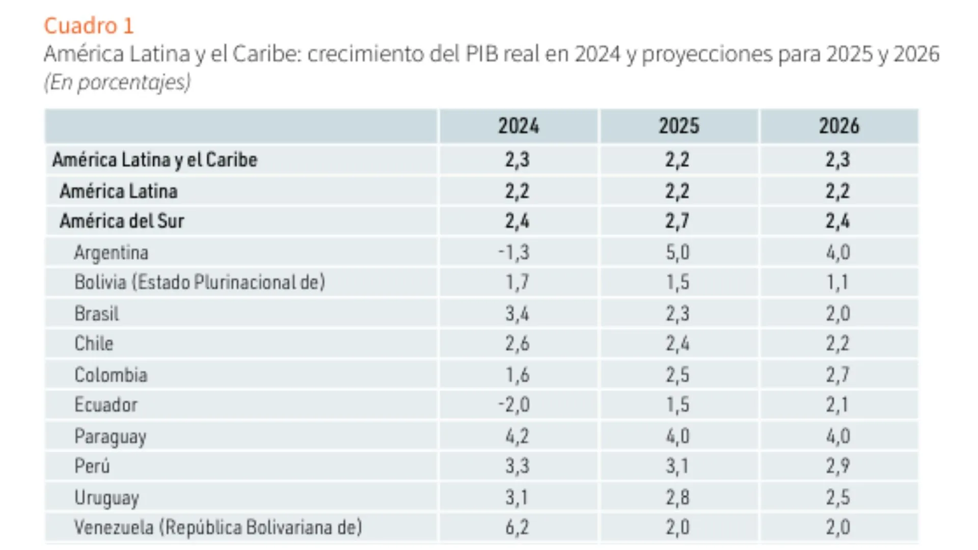 El informe advierte que, a pesar del repunte argentino, la región atraviesa una fase de desaceleración estructural. Entre 2016 y 2025, el crecimiento promedio del PBI ha sido de apenas 1,2%, incluso por debajo de los niveles registrados en los años ochenta.