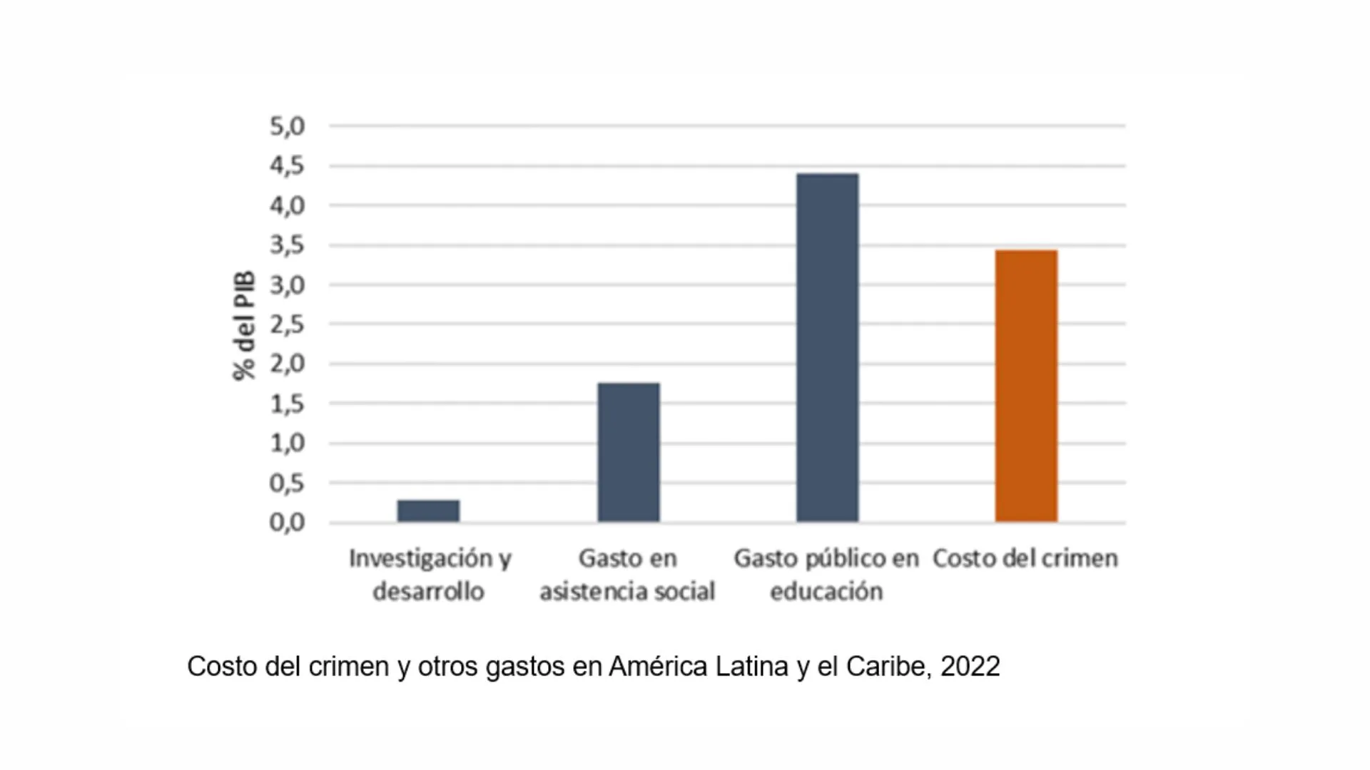 El costo del crimen equivale al 78% del presupuesto público para educación, el doble del presupuesto público para asistencia social y 12 veces el presupuesto para investigación y desarrollo.