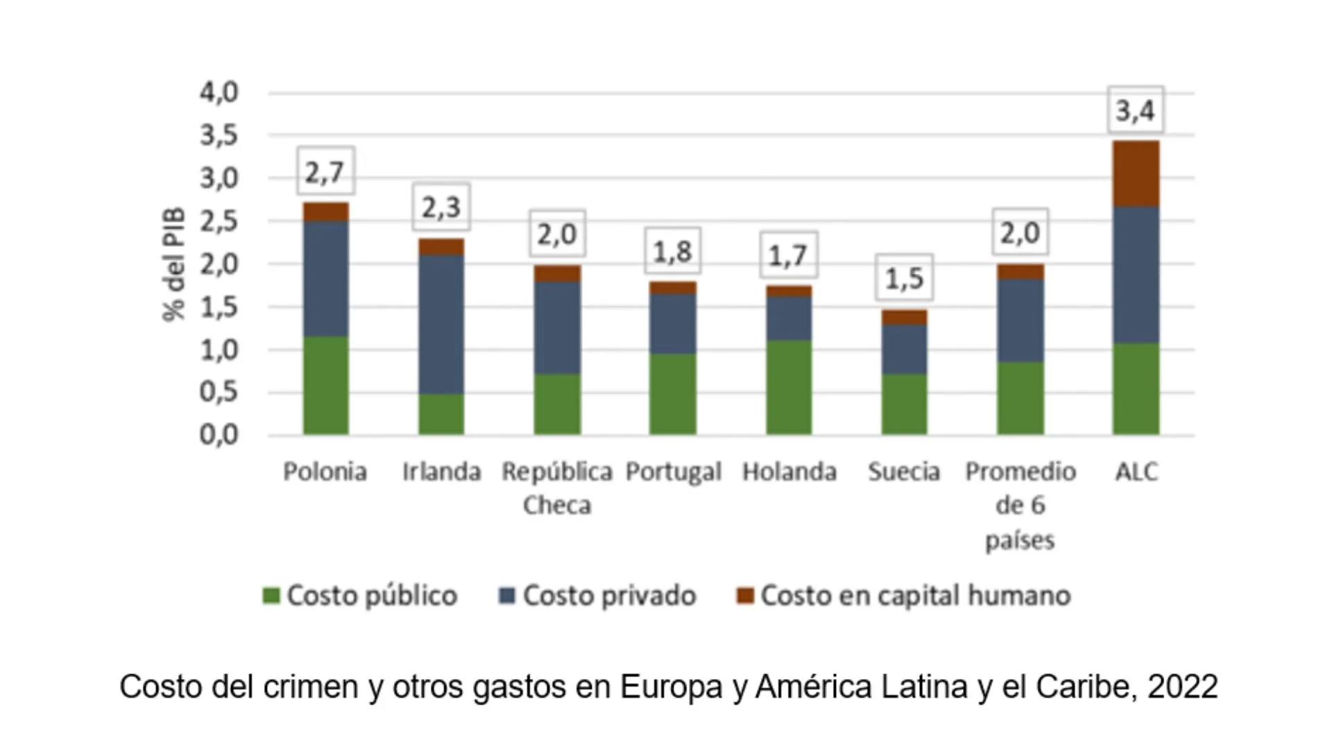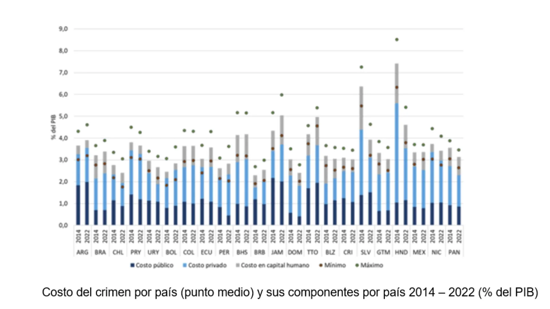 Según el BID, en 2022, los costos directos del crimen alcanzaron el 3.44% del PIB de la región.
