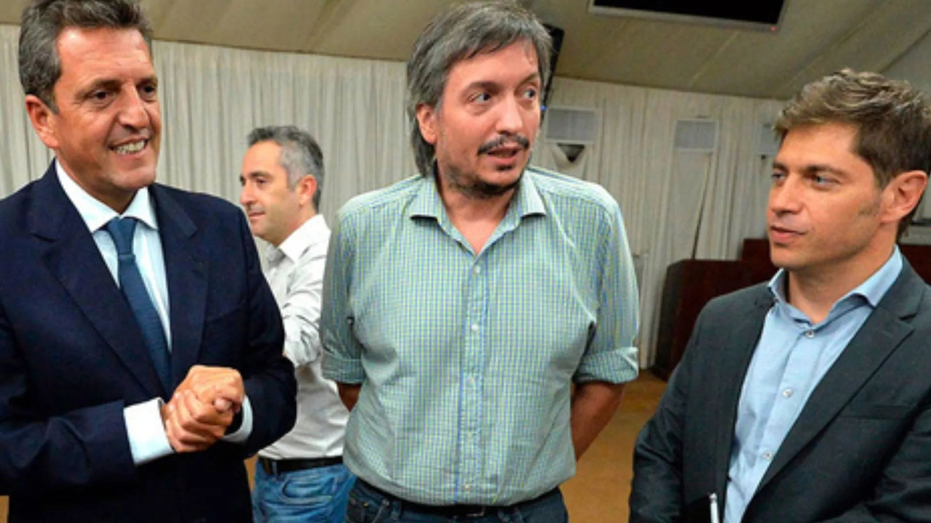 Sergio Massa, Máximo Kirchner y Axel Kicillof fueron los tres ideólogos y creadores del frente “Fuerza Patria”. Créditos: Página 12.