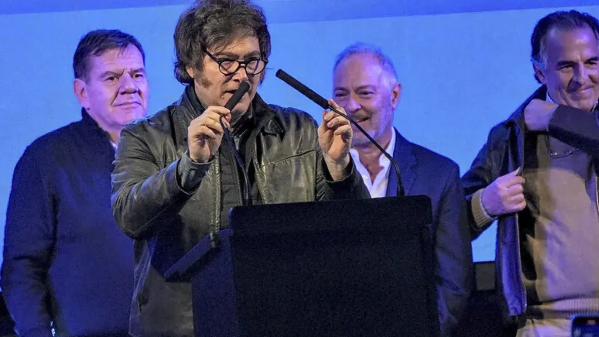 Javier Milei en el acto oficial del lanzamiento de la “Alianza La Libertad Avanza” en el Club Atenas, La Plata. Créditos: NA.