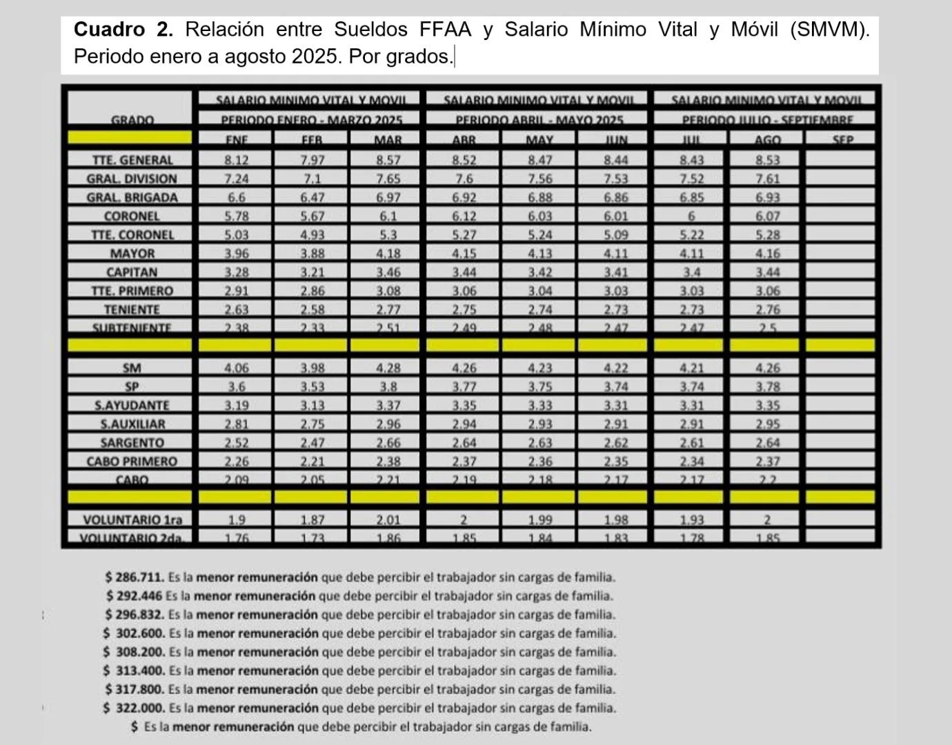 En general, el informe del primer semestre de 2025 sobre la relación entre los sueldos del Personal Militar y la CBT revela una situación económica desafiante para una parte significativa de las FF.AA. La constante evolución al alza de la CBT, reflejo de un entorno inflacionario, ha generado una presión creciente sobre los salarios.