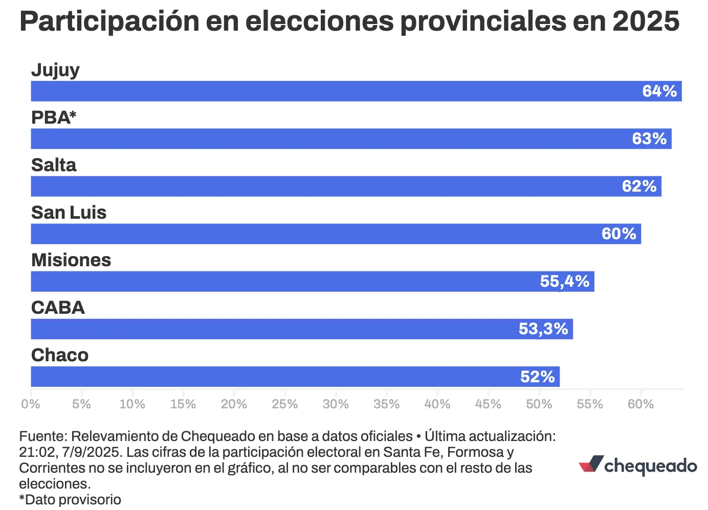 El día de ayer, los bonaerenses debieron elegir diputados y senadores provinciales, concejales y consejeros escolares, en el marco de la elección legislativa provincial en las ocho secciones electorales. De acuerdo a los datos oficiales de la Junta Electoral, la participación electoral fue del 63,19%; marcando cierta sorpresa, si se tiene en consideración los porcentajes de participación ciudadana en las elecciones provinciales desdobladas que tuvieron lugar este año. De hecho, la participación electoral que se registró el día de ayer, en la jornada en la provincia de Buenos Aires, fue ciertamente mayor a la de la mayoría de los comicios provinciales, que fueron desdoblados, el corriente año.