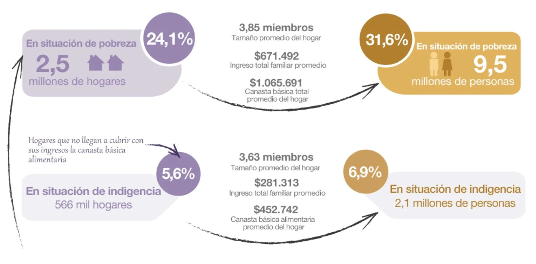 - 9,4 millones de personas viven bajo la línea de pobreza y 2 millones bajo la de indigencia