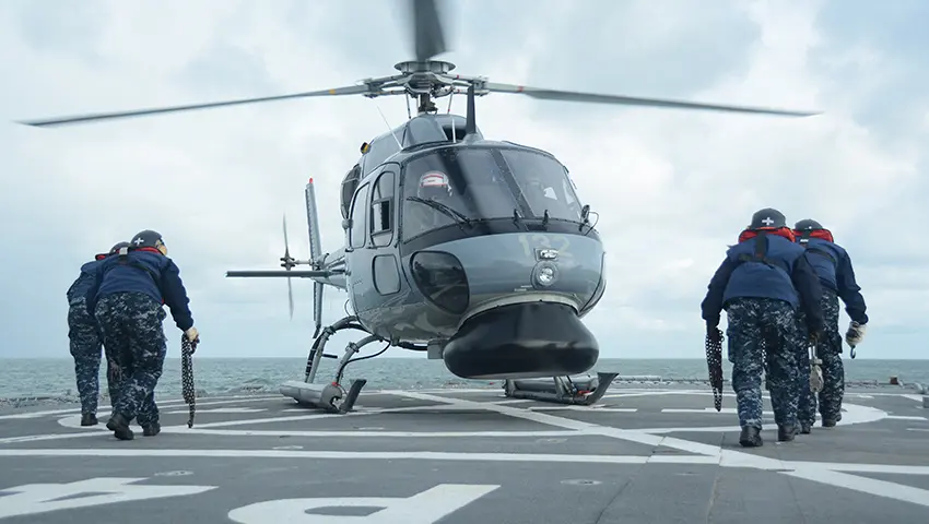 También, y gracias a la participación en la actividad de un helicopteros AS-555 Fennec del Comando de Aviación Naval, se realizaron prácticas de roles de cubierta de vuelo, donde la “Guardiamarina Sofía Almanza Rodríguez, quien se desempeñó como señalera, mencionó la importancia de estas ejercitaciones para afianzar los procedimientos, tanto con la aeronave como con el personal del buque que interviene en la maniobra”. Concluido el adiestramiento, la ARA Robinson retorno a su asiento natural.