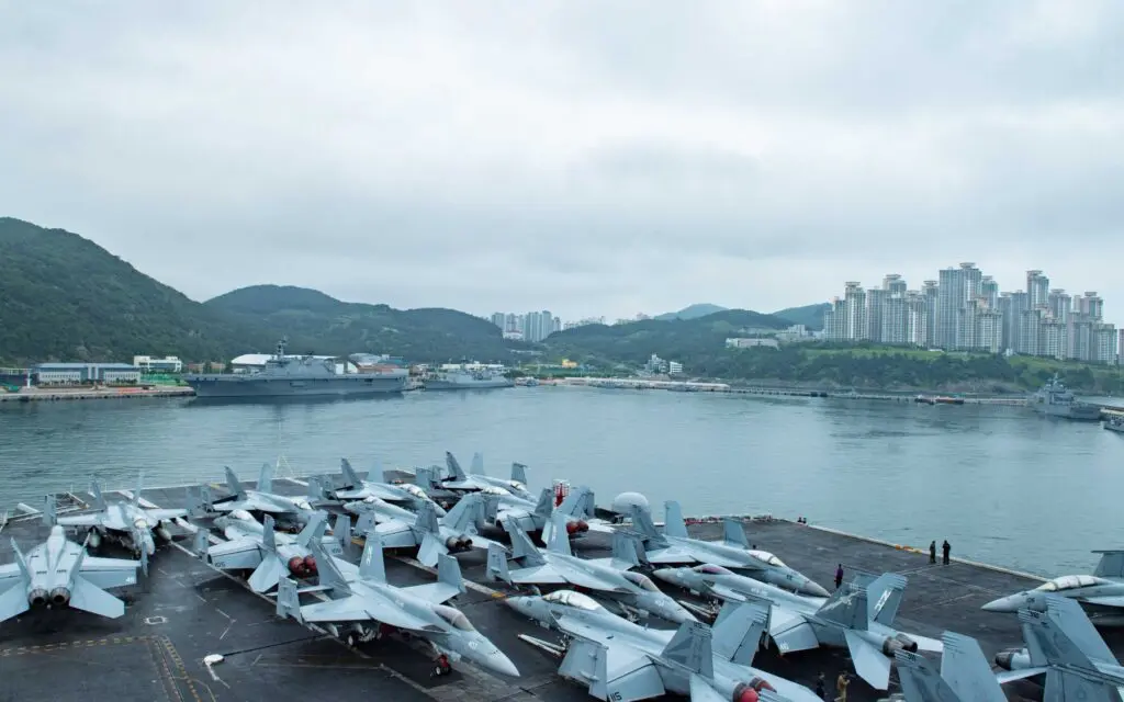 En el día de la fecha, el portaaviones USS Theodore Roosevelt (CVN-71) de la Armada de EE. UU. junto al Grupo de Ataque que lo acompaña partió de Busan para ser parte del ejercicio que se llevará a cabo junto con las fuerzas navales de Corea del Sur y Japón en los primeros días del mes de agosto.