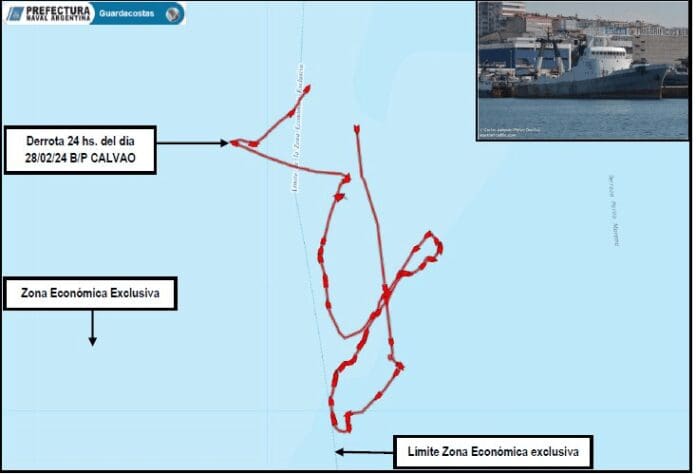 Por lo pronto, no fueron registradas comunicaciones por parte del capitán del Calvao a las Estaciones Costeras de la Prefectura, lo cual no pudo notificar que el ingreso a la zona fue producto de causas de fuerza mayor o circunstancia impredecibles que llevaran a la embarcación a tener que transitar hacia la ZEEA. Es decir, el hecho ocurrió con intencionalidad por parte del pesquero portugues.