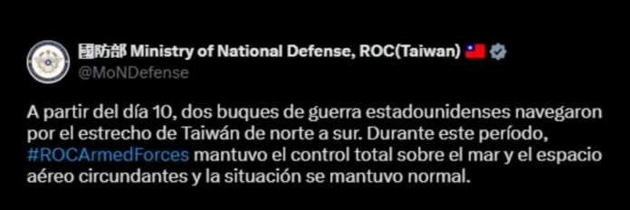 Por un lado, Taiwán normalizó el paso de los buques estadounidenses en el marco de su cooperación bilateral contínua. No obstante, China caracterizó la situación como una amenaza para su soberanía y seguridad “con el pretexto de la libertad de navegación”.