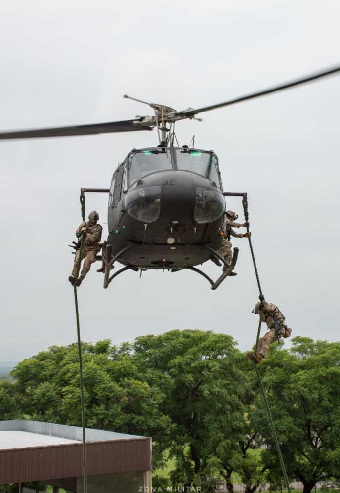 Los helicópteros operaron en espacios confinado, insertando a las tropas de operaciones especiales mediante asalto aéreo y fast-rope, a la vez que los vehículos evolucionaban por la extensión del predio a los fines de conformar los anillos de seguridad y desplazar a las diversas fracciones. Tiradores especiales se apostaron en distintas alturas, proporcionando sobrevigilancia a los elementos de asalto.